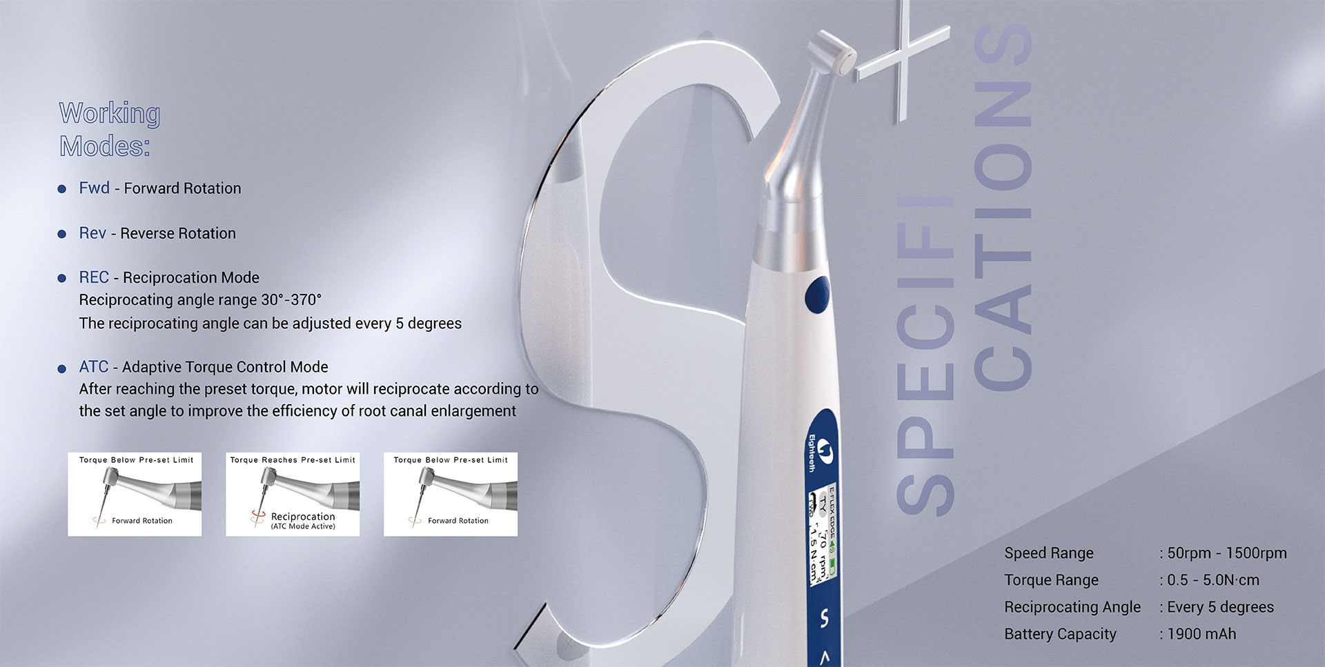 - قابلیت برگشت خودکار Reciproc – Apical Slow Down – Auto Start & Stop – Auto Stop & Revers – Revers